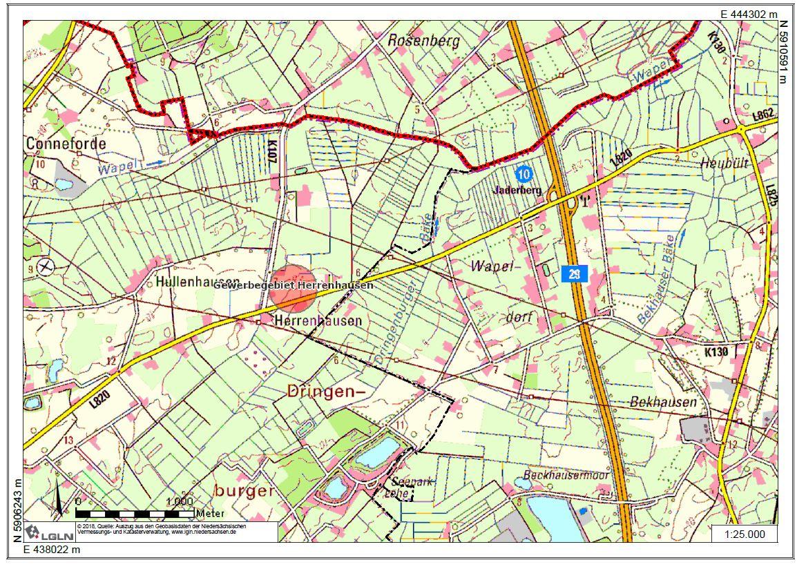 Industrie- und Gewerbegebiet im Norden der Gemeinde Wiefelstede in unmittelbarer Nähe der A 29 (Abfahrt Jaderberg).